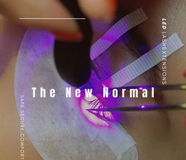Attaching eyelash extensions using a specialized adhesive that instantly cures and eliminates fumes under an FDA approved LED light pulse creating a sweat-proof, oil proof bond that can last up to 6-8 weeks.